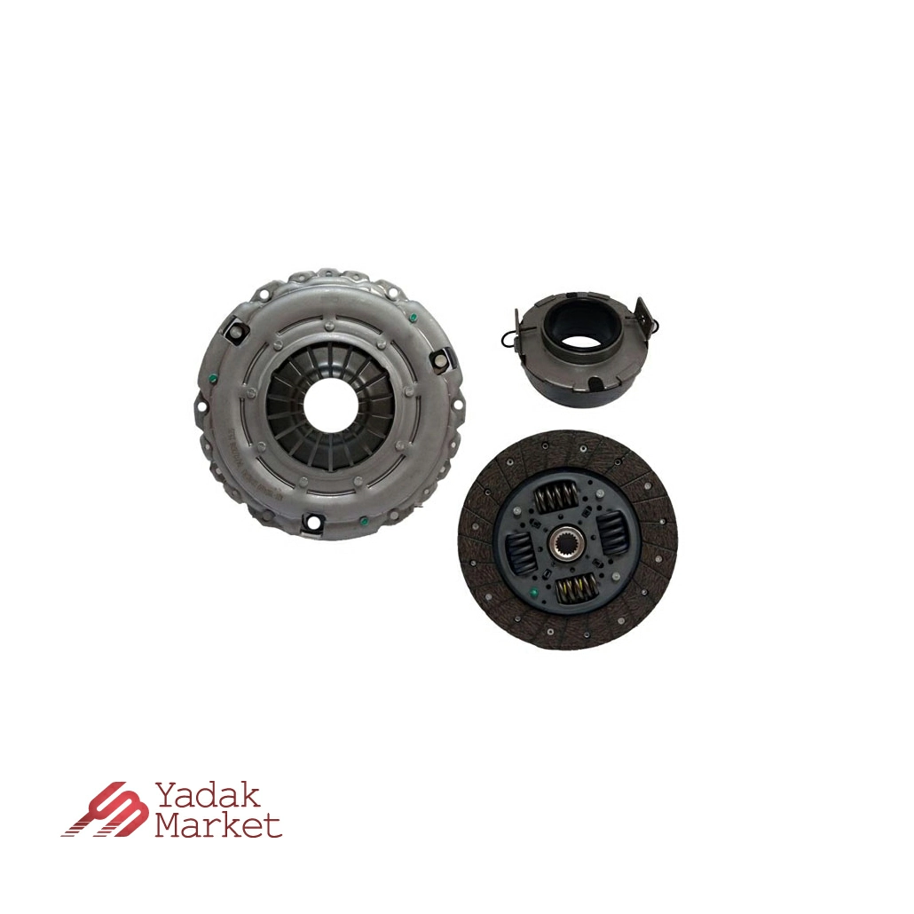 دیسک و صفحه به یکدیگر وصل میشوند و لنت هم روی صفحه به صورت مناسبی نصب میشود تا در زمان اتصال به فلایویل از آن محافظت کند تا آسیب نبیند. ضریب اصطکاکی این صفحه نیز زیاد است. این قطعات که میان گیربکس و موتور این خودرو قرار گرفتهاند باعث ایجاد ارتباط میان آنها میشوند.
